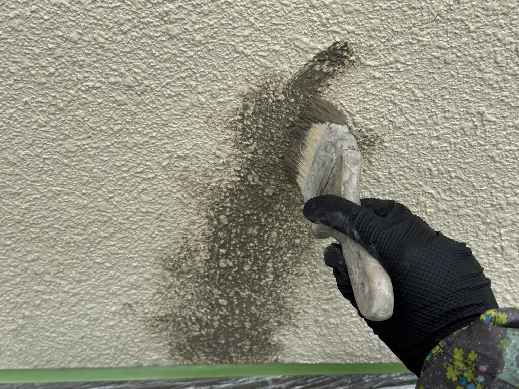 コーキングやカチオン材が乾いたら、補修した箇所のプライマーを塗布します。