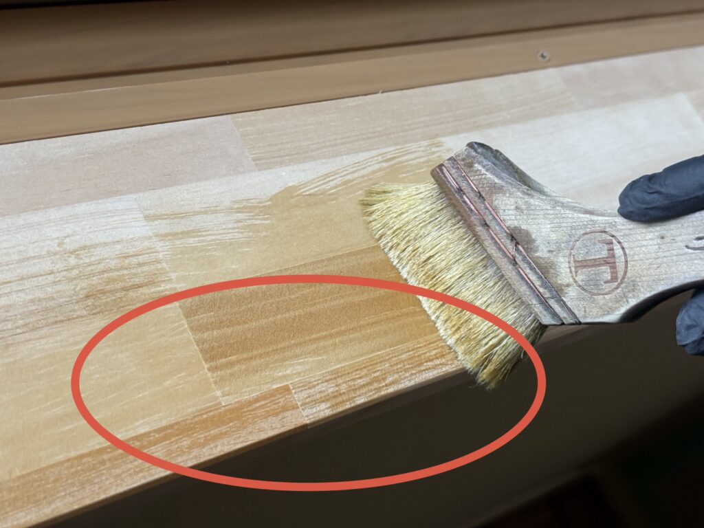 施工中は、⭕️の中のような「かすれ」を作らないように全体が均等に塗れているかチェックしています☝🏻 ̖́-
