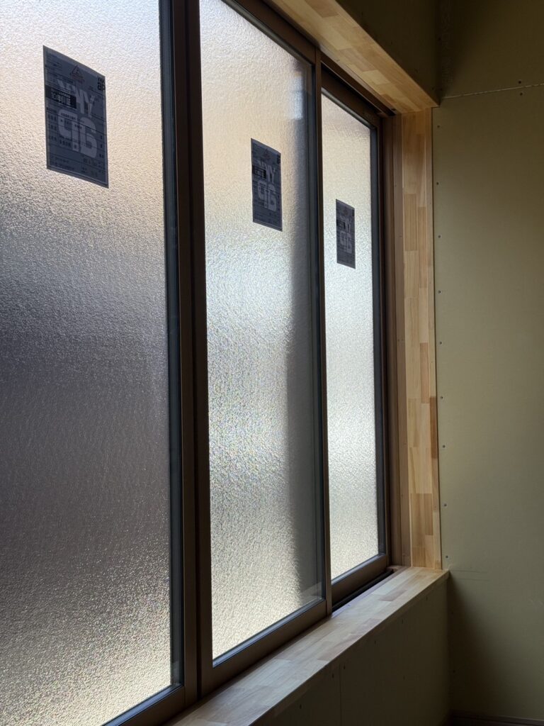 窓枠の木部を塗装します。