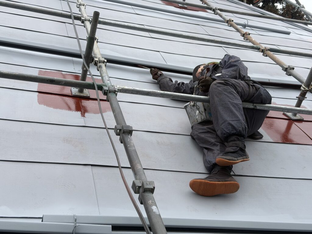 雪止めアングルの内側のような、細部もローラーの大きさを使い分け、塗り込んでいきます。