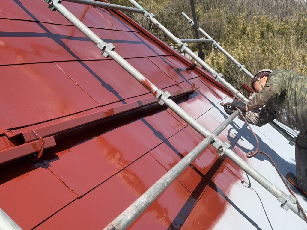 屋根の美観と耐久性を仕上げる「上塗り」です。