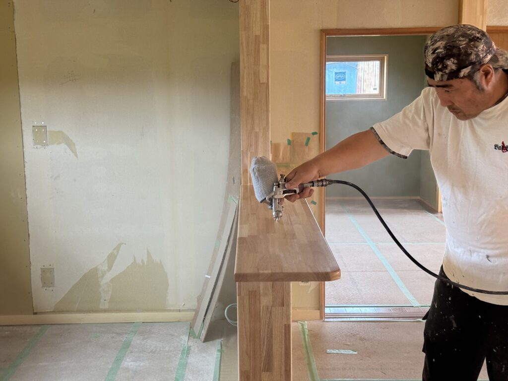 内部塗装で使用するオイル塗装は基本的には1回塗りになります。