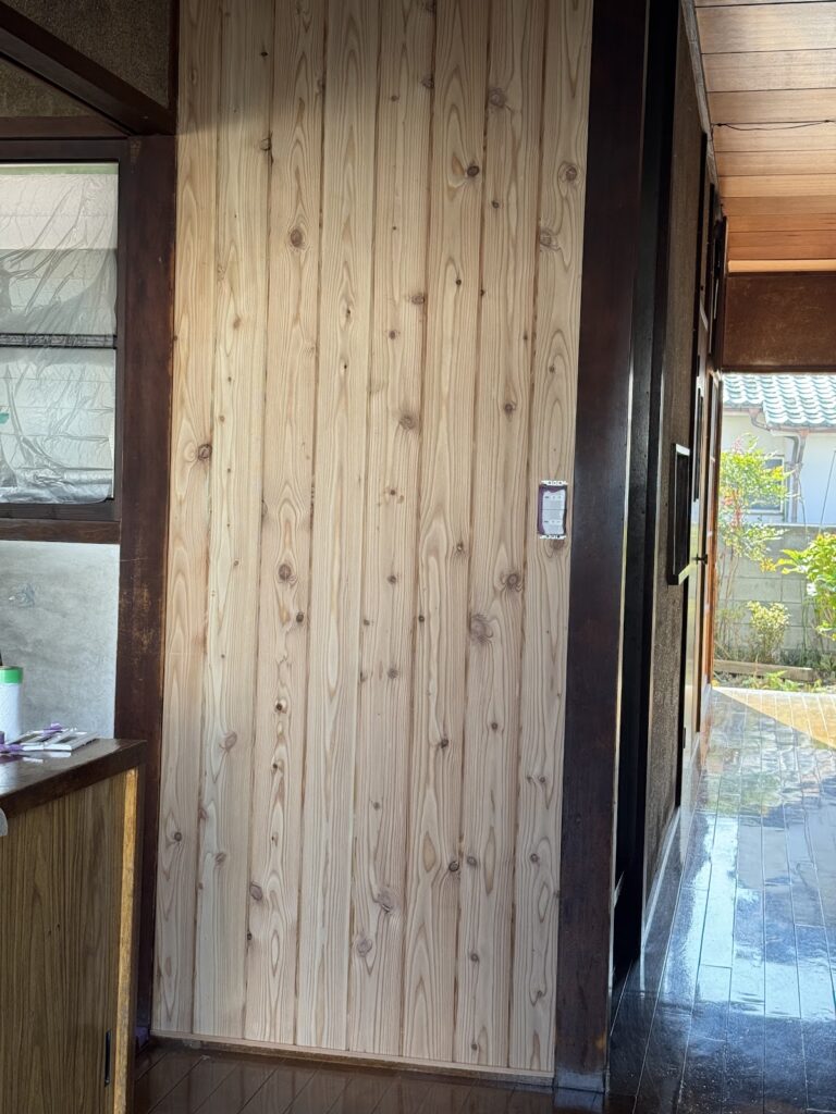 廊下の1部を板壁にしました。