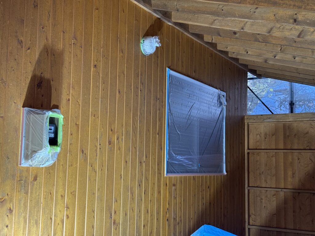 はじめに、窓や、換気口など汚れないようにビニールで塞いでいきます。