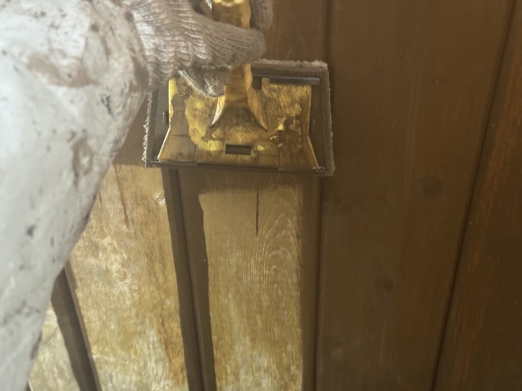 木の節の部分は、塗料をよく吸い込むので色が濃く、少しケバケバした感じに見えています。