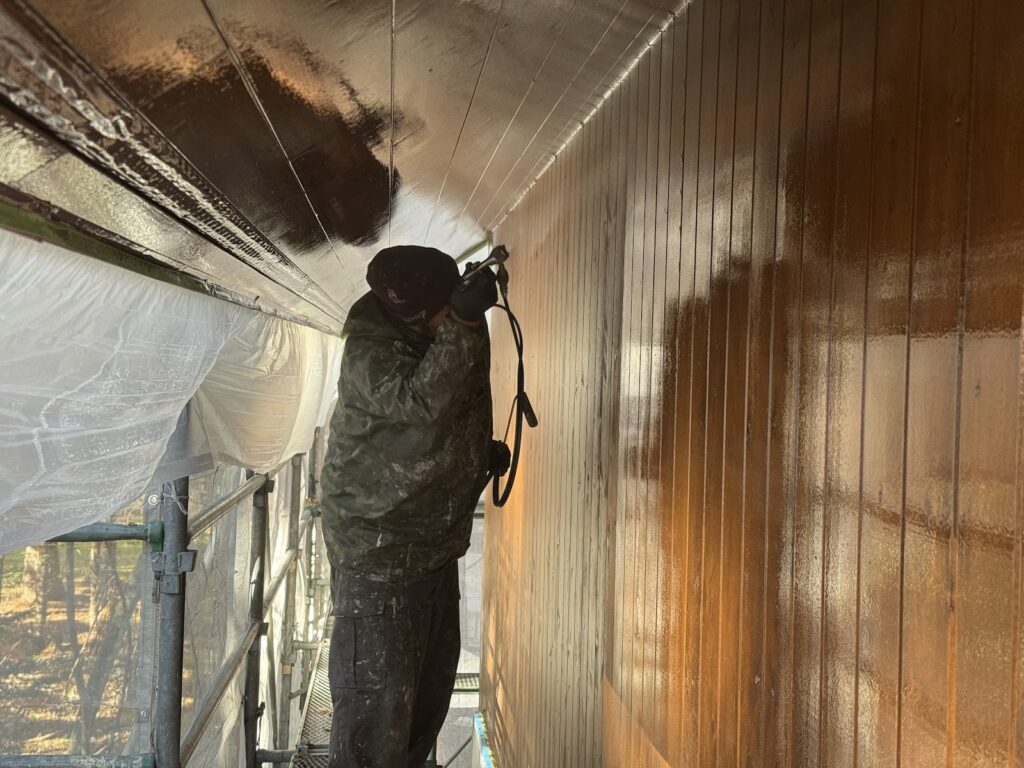 「外壁 板貼り 塗り替え工事~着色+上塗り編~」の