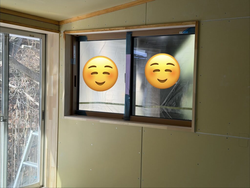 今回増築した部屋の見切りや窓枠、巾木を塗装します。