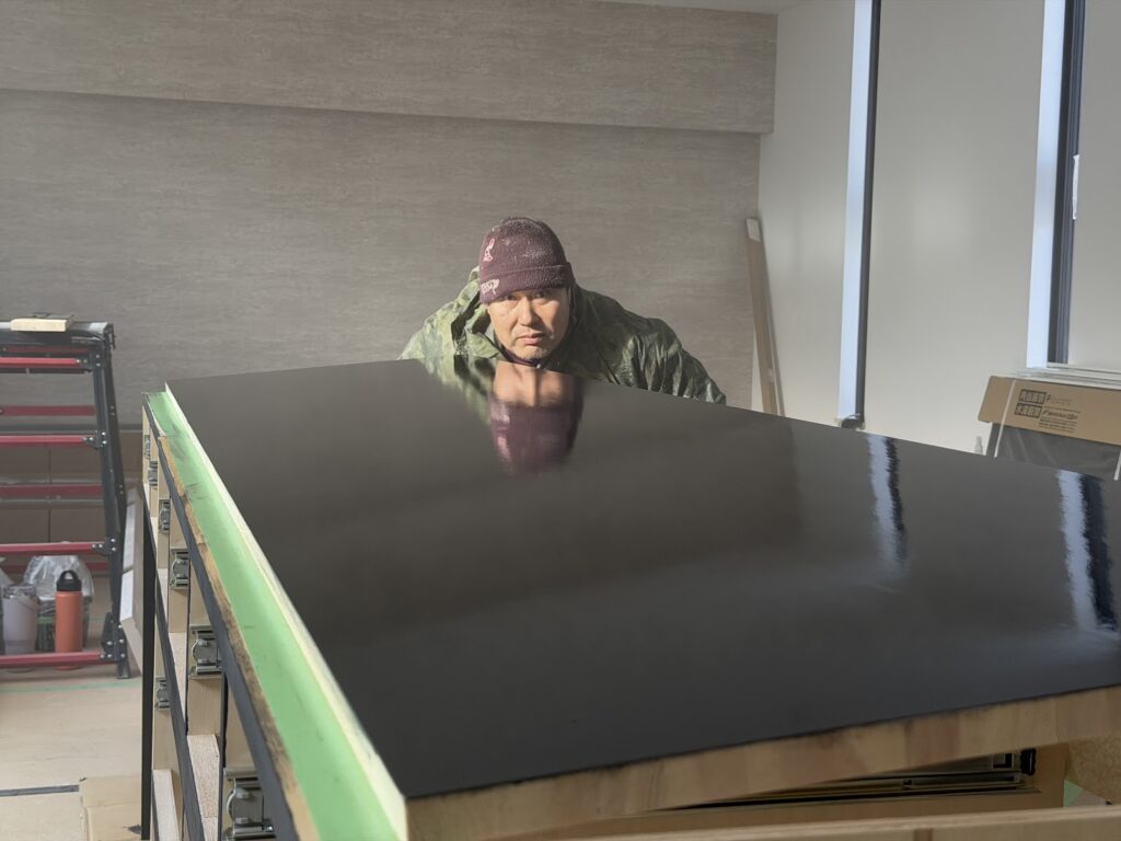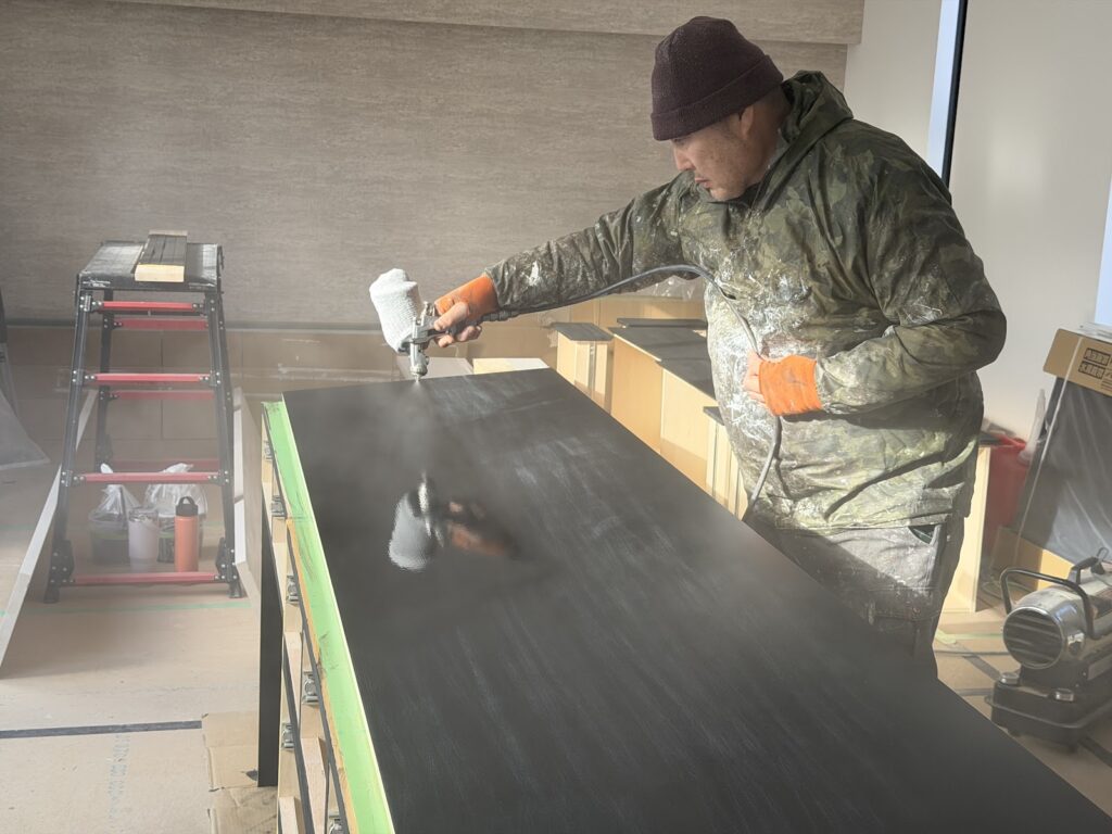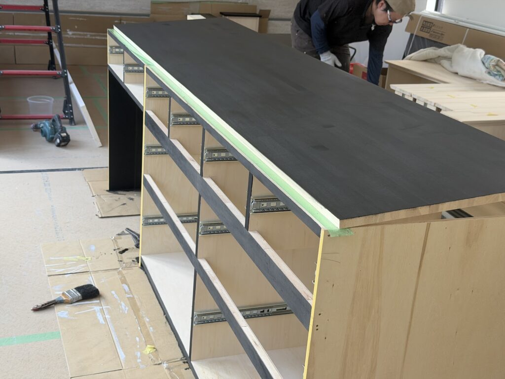 天板のウレタン塗装をしていきます。