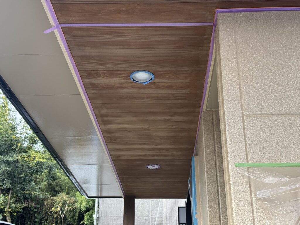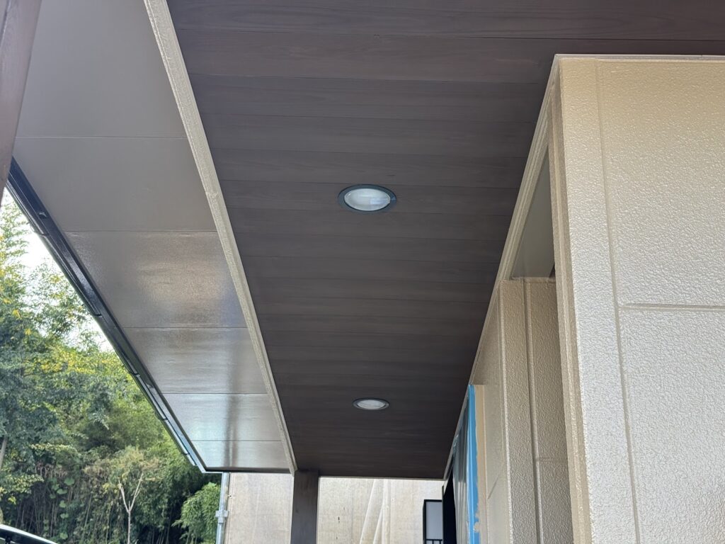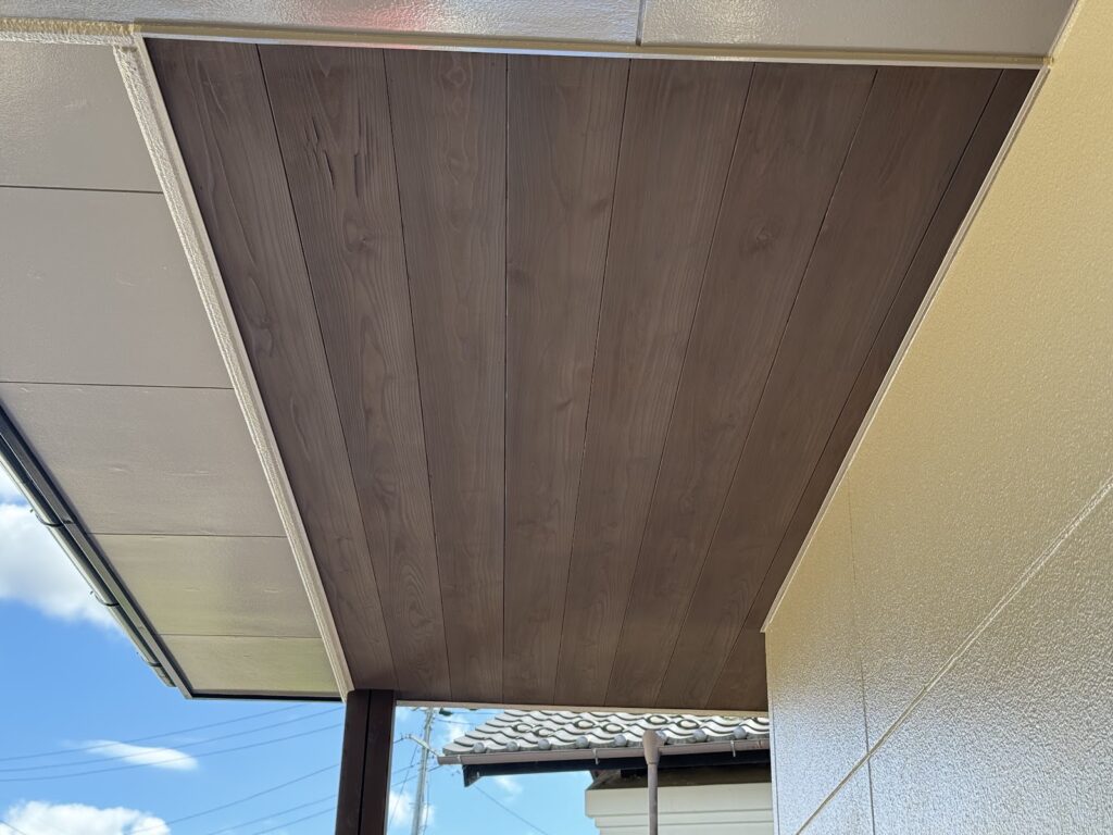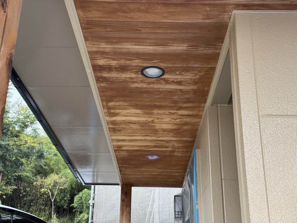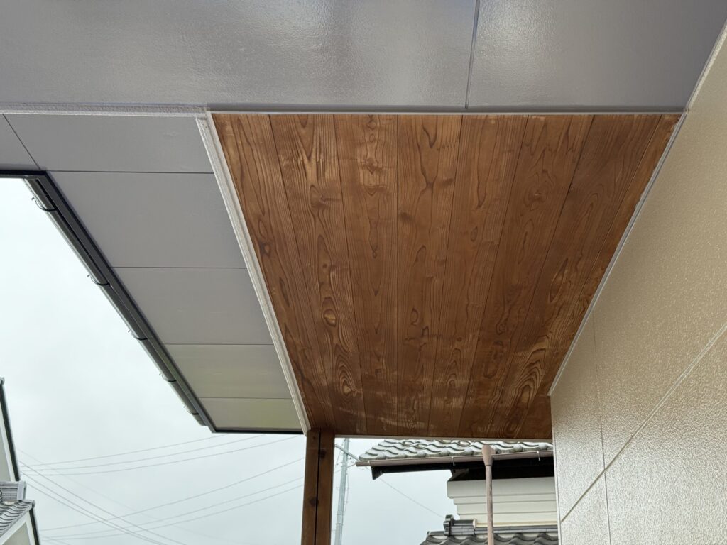 玄関の軒裏が板貼りでした。