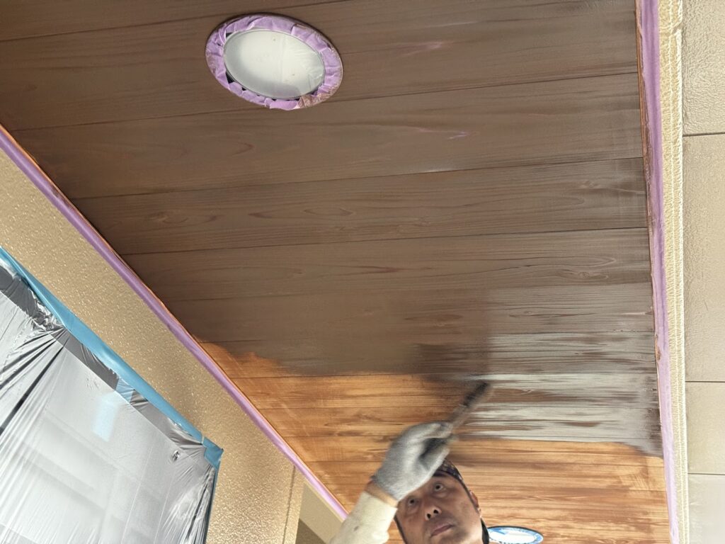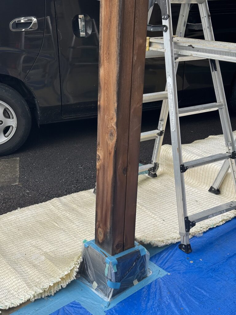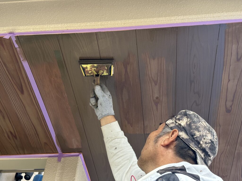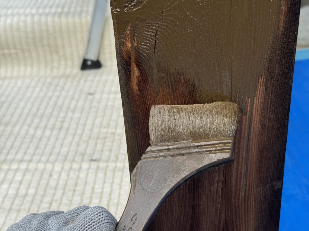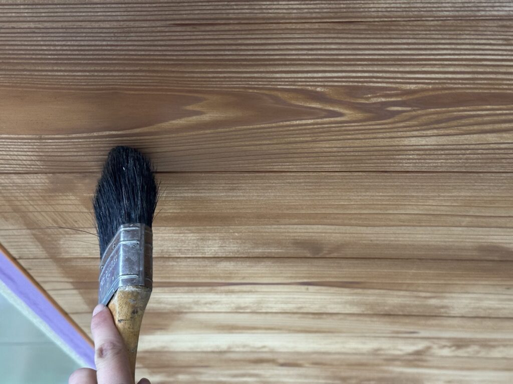 養生が出来たら、キシラデコールを塗布していきます。