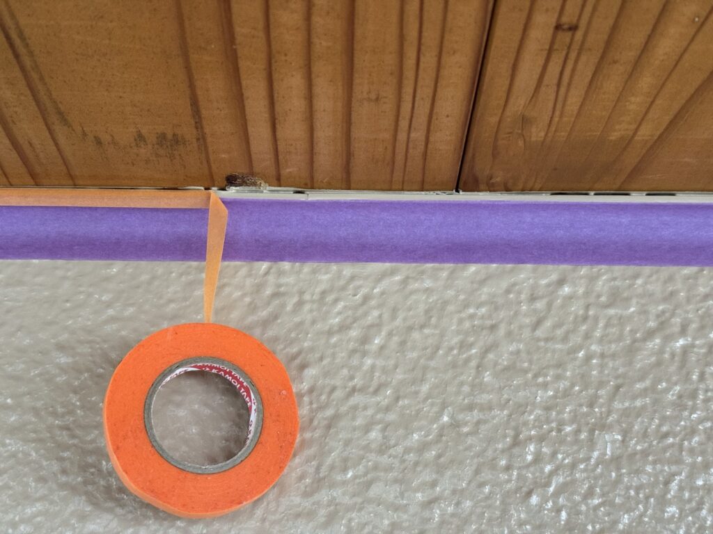 この時、少し離れた所に太いテープを先に貼り、細いテープで際を埋めると、テープの隙間に塗料が流れ込むことを防ぐことができます☝🏻 ̖́