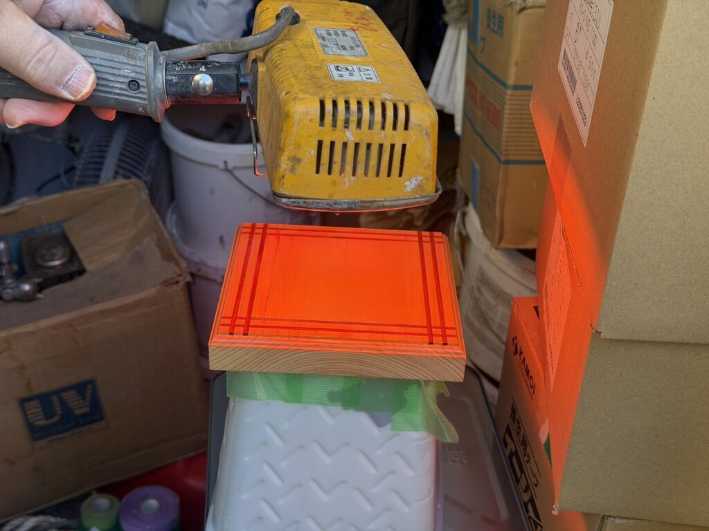 放置後、専用ランプ(赤外線)で、念入りに溶剤成分を飛ばしていきます。