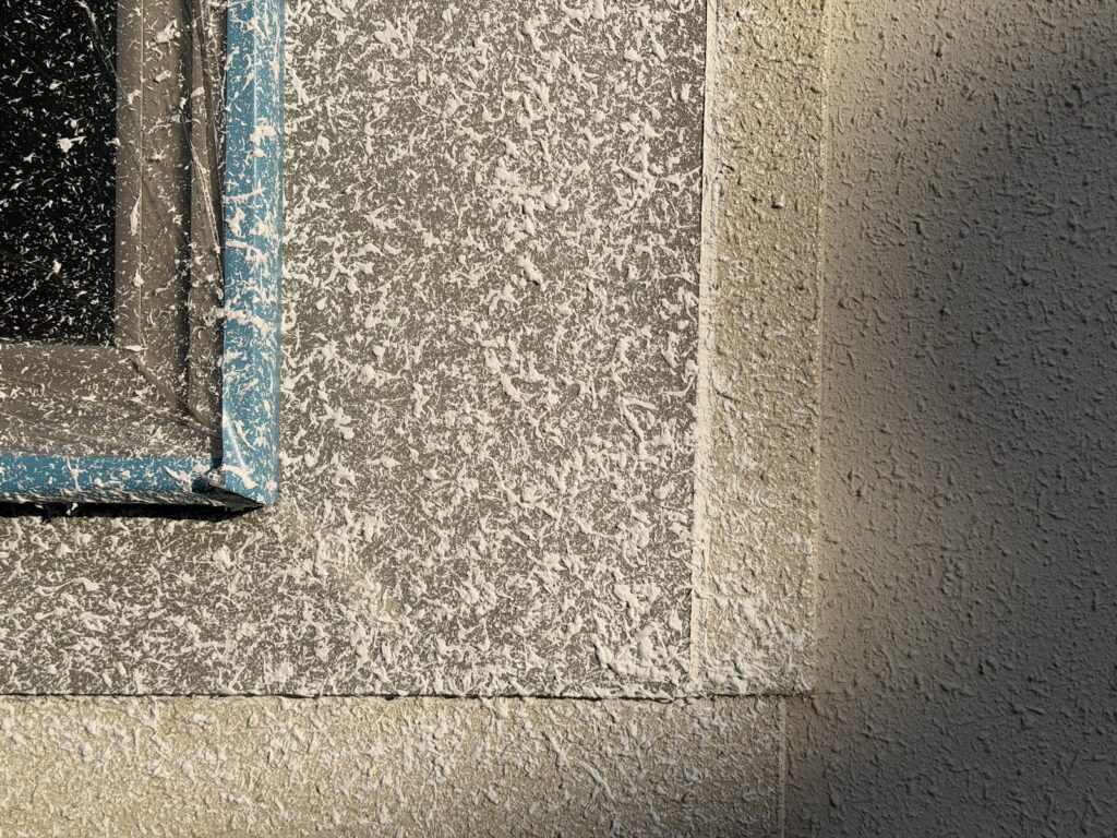 ▶︎新規でモルタルを塗ったので、既存の模様に合わせて吹き付けをします。