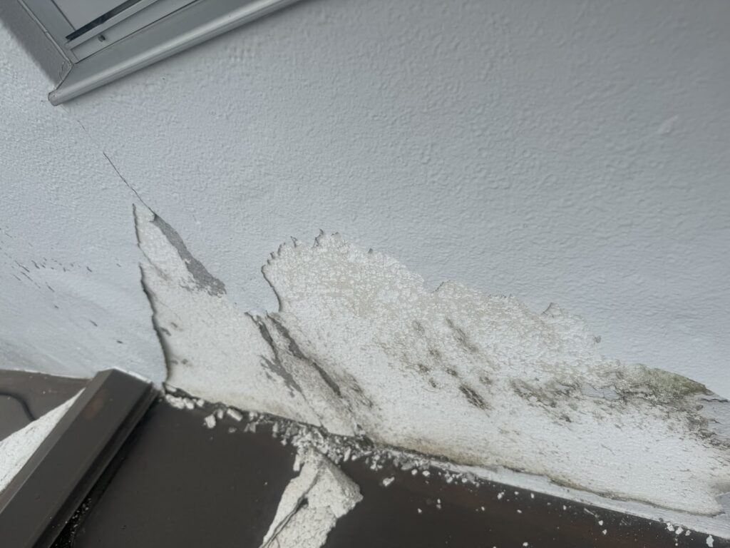 外壁に触れた手に白い粉が付く状態は、塗膜の樹脂が分解され、防水機能がほぼ失われているサインです。