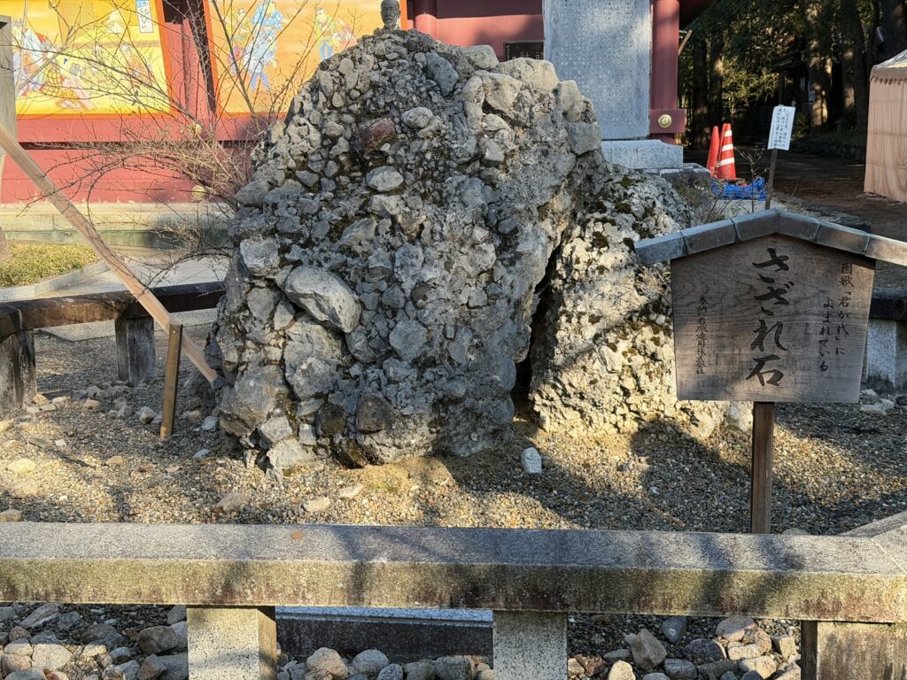 境内を歩いていると、ひときわ目を引く石がありました。